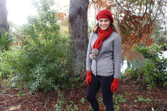 Relaxed Cable Scarf with Rabbit Fur Pompom