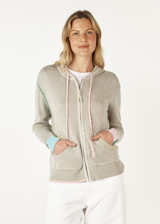 Wave Trim Zip Cardigan